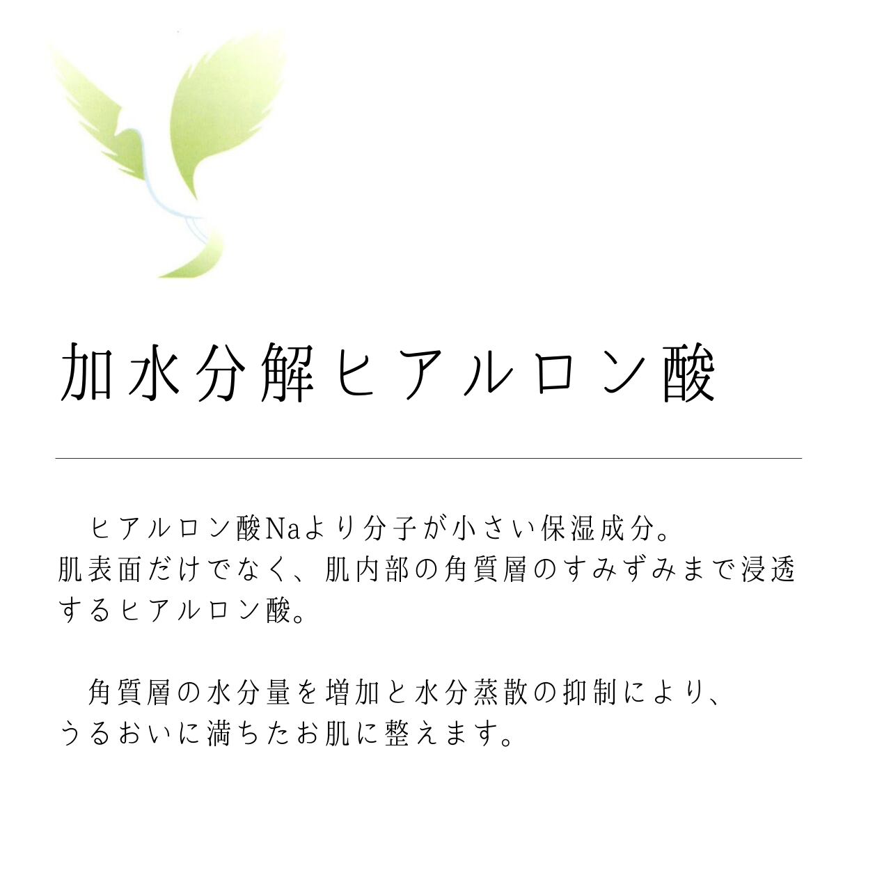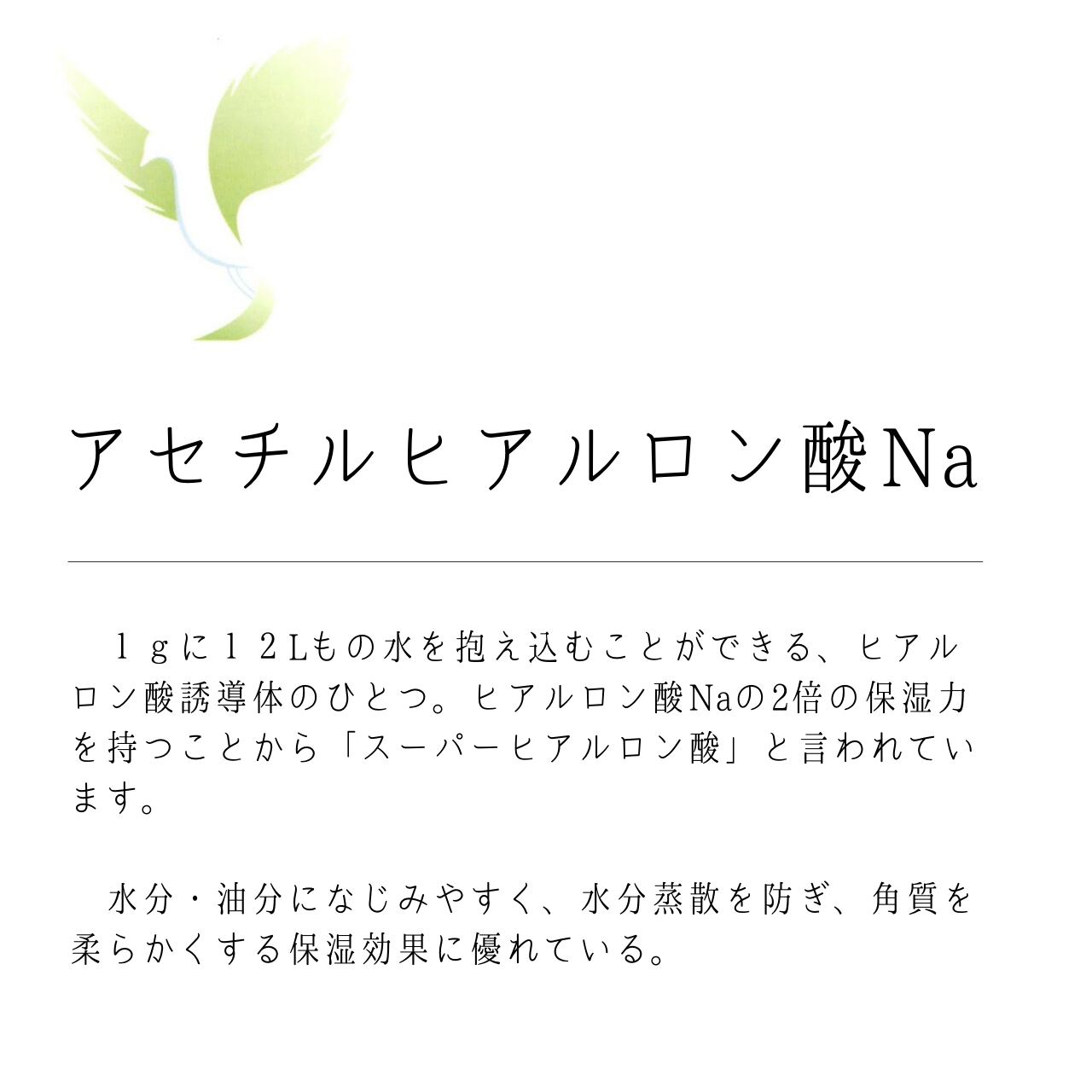 ヒアルロン酸・加水分解ヒアルロン酸・アセチルヒアルロン酸の3種のヒアルロン酸、9種のアミノ酸類を高配合。スーパーヒアルロン酸と呼ばれる「アセチルヒアルロン酸」は通常のヒアルロン酸の2倍の保水力があり、柔らかでうるおいに満ちた素肌に整えます。