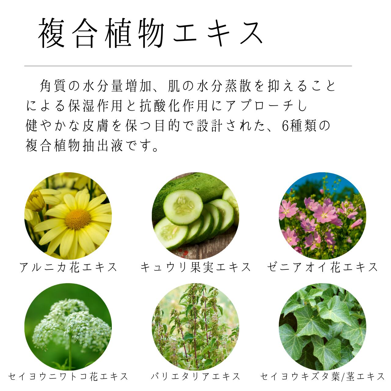 天然由来の植物保湿成分を配合。植物抽出エキスでしっとり、しなやかなお肌へ。